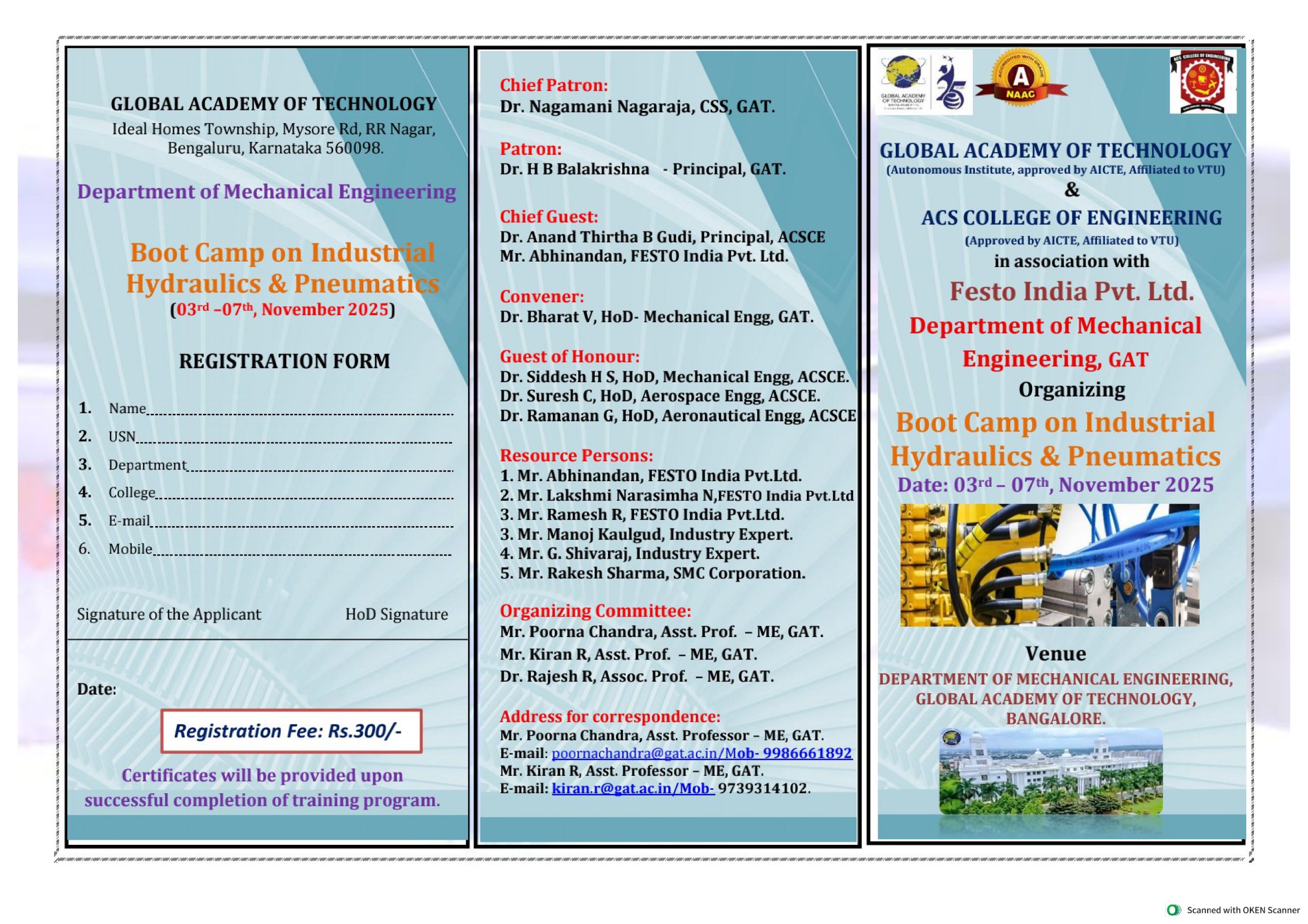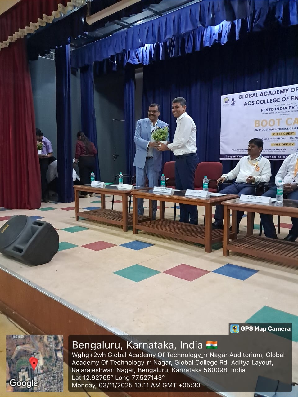 ACS College of Engineering and Global Academy of Technology, in association with Festo India Pvt. Ltd., inaugurated a 5-day Boot Camp on Industrial Hydraulics & Pneumatics on 3rd November 2025 at GAT, Bengaluru.