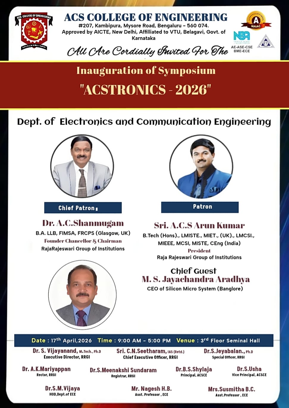 Venue: Department of ECE, ACSCE