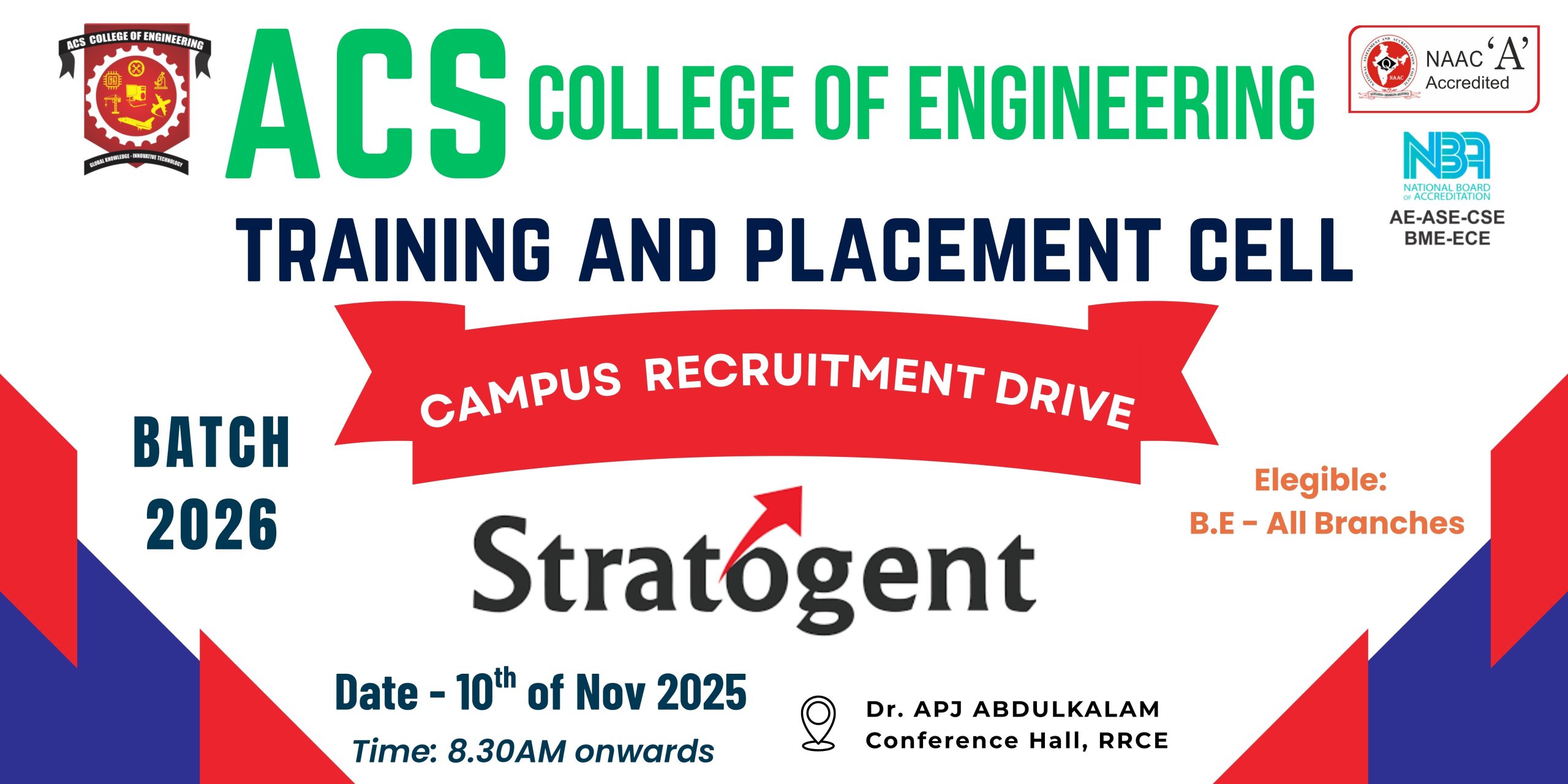 Students took part with great interest and showcased strong technical and interpersonal skills throughout the selection rounds. Thank you to M/s. Stratogent for visiting ACSCE and engaging with our aspiring graduates. Best wishes to all students awaiting results