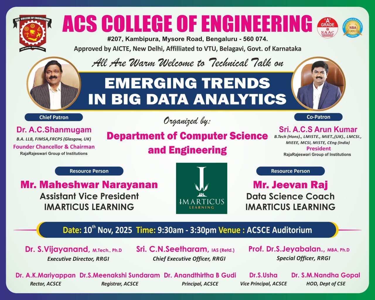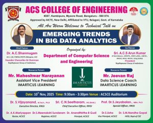 The Department of Computer Science & Engineering is pleased to announce a special program on “Emerging Trends in Big Data Analytics”, scheduled for 10th November 2025.