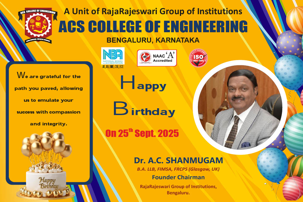 The entire ACS College of Engineering (ACSCE) family celebrated the birthday of our esteemed Founder & Chairman Dr. A.C. Shanmugam Sir.