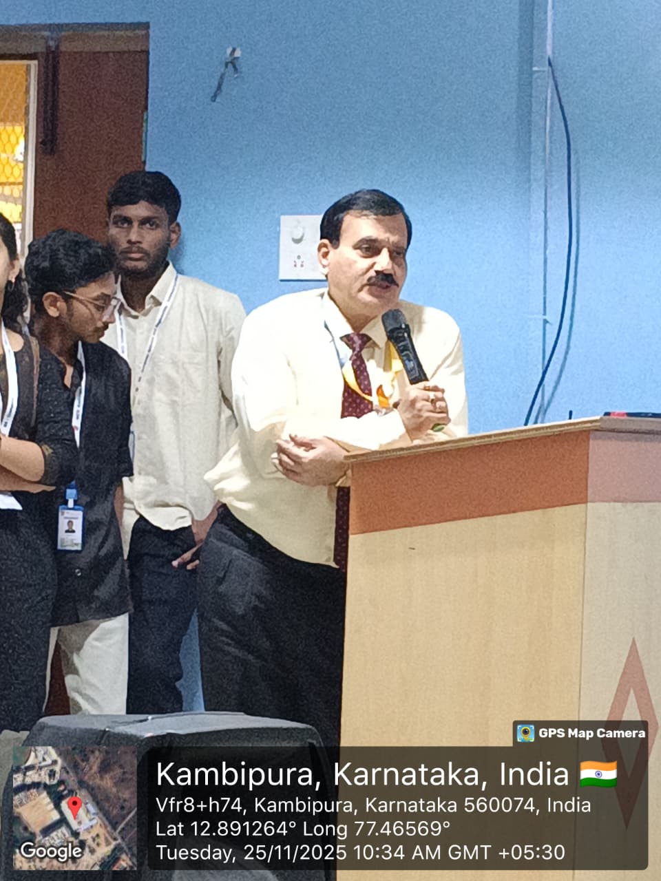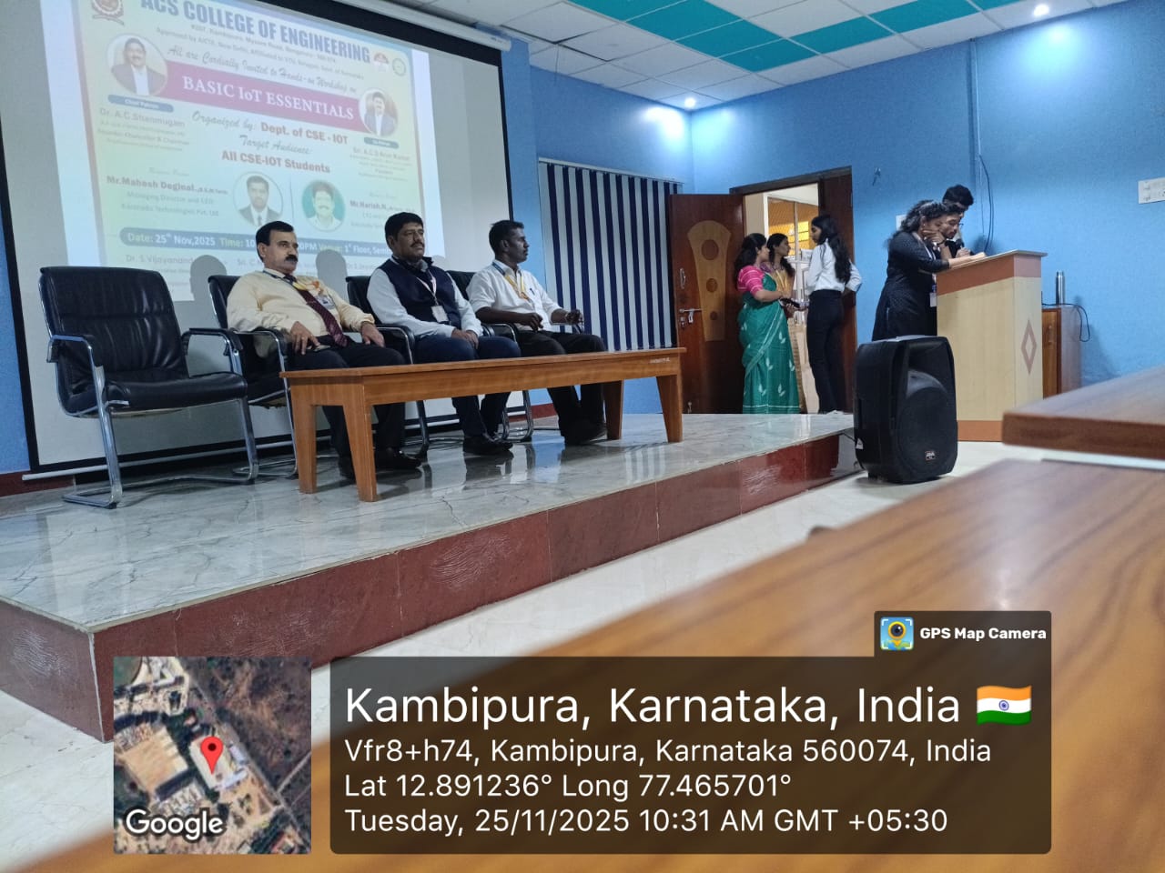 The Department of CSE – IoT organized a Hands-on Workshop on Basic IoT Essentials on 25th November 2025 at the Seminar Hall. The session, led by Mr. Mahesh Deginal and Mr. Harish N from Karunadu Technologies Pvt. Ltd., was held from 10:00 AM to 4:00 PM and offered practical, hands-on learning for all CSE–IoT students. The workshop was successfully conducted and proved highly valuable for participants.
