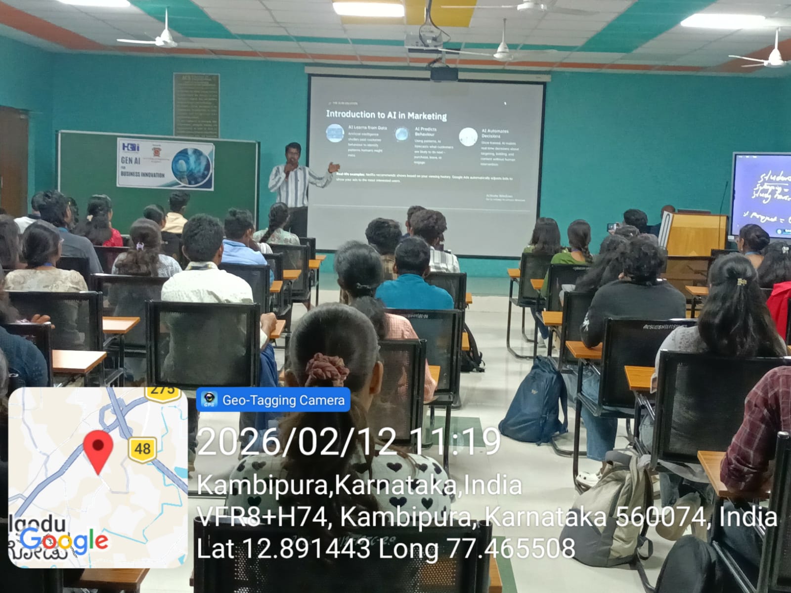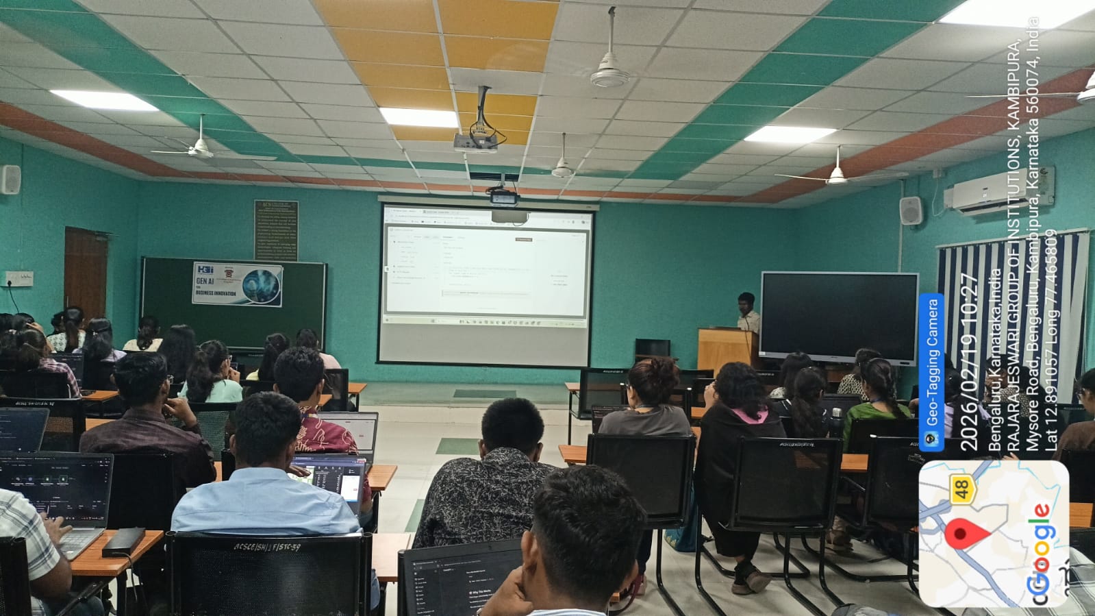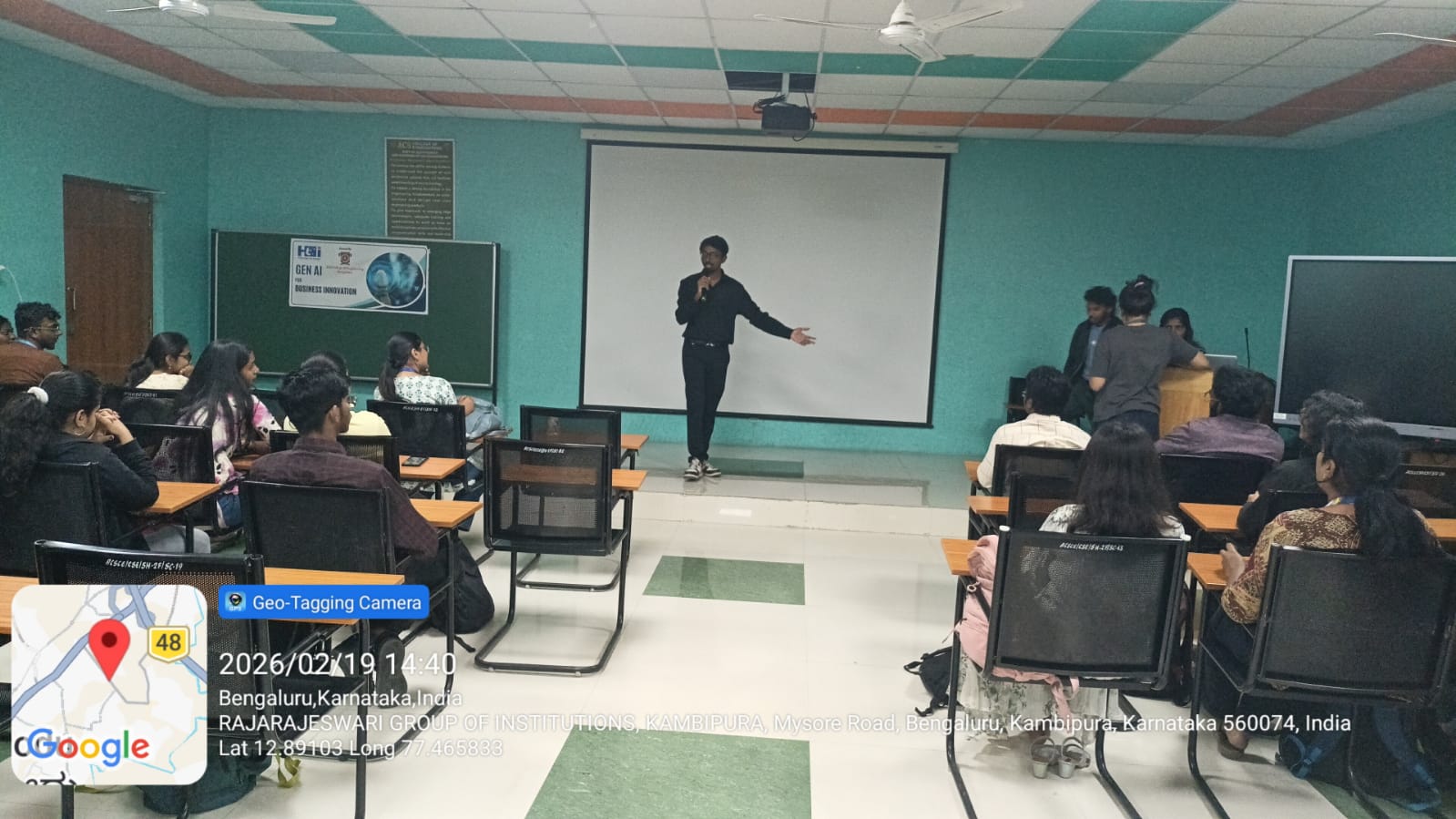 The technical orientation was delivered by the trainers Mr. Ajai Sabari Gireesh, Mr. Vimal, and Mr. Jashwanth, who provided insights into Generative Artificial Intelligence, covering core concepts such as machine learning fundamentals, deep learning models, large language models (LLMs), prompt engineering, data-driven decision-making, AI-enabled automation, and ethical considerations.