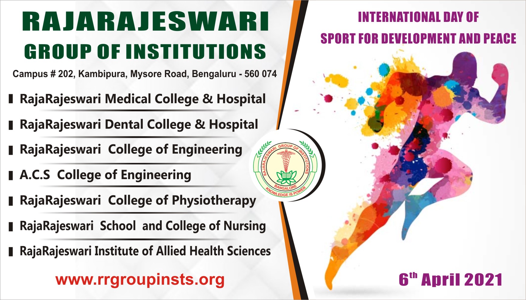 The International Day of Sport for Development and Peace (IDSDP) is an annual celebration of the power of sport to drive social change, community development and to foster peace and understanding. This was created by the United Nations General Assembly in 23 August 2013, supported by the International Olympic Committee since 6 April 2014. This date commemorates the inauguration, in 1896, of the first Olympic games of the modern era.