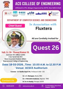 The Department of Computer Science and Engineering (CSE), ACS College of Engineering, in collaboration with Fluxtera, successfully organized Quest 26 on 18th March 2026 at the ACSCE Auditorium.