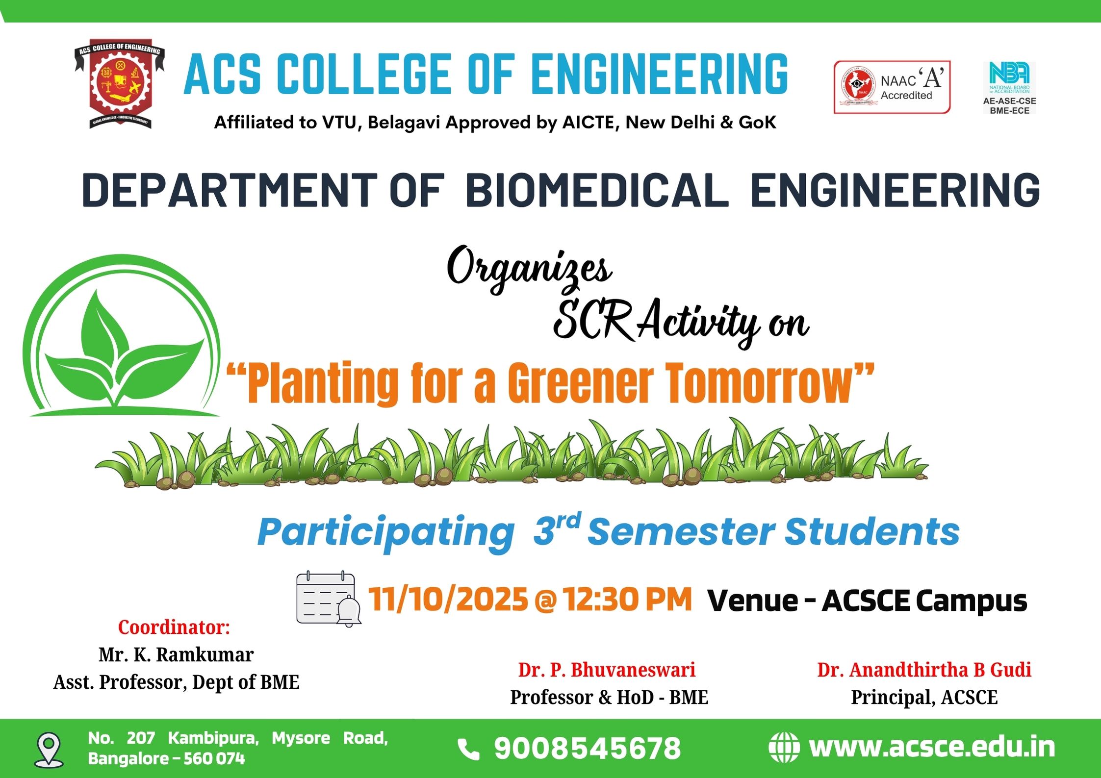 The activity aimed to raise environmental awareness and promote sustainability among students. 3rd Semester Biomedical Engineering students enthusiastically participated in planting saplings across the campus, contributing to a greener and cleaner environment.