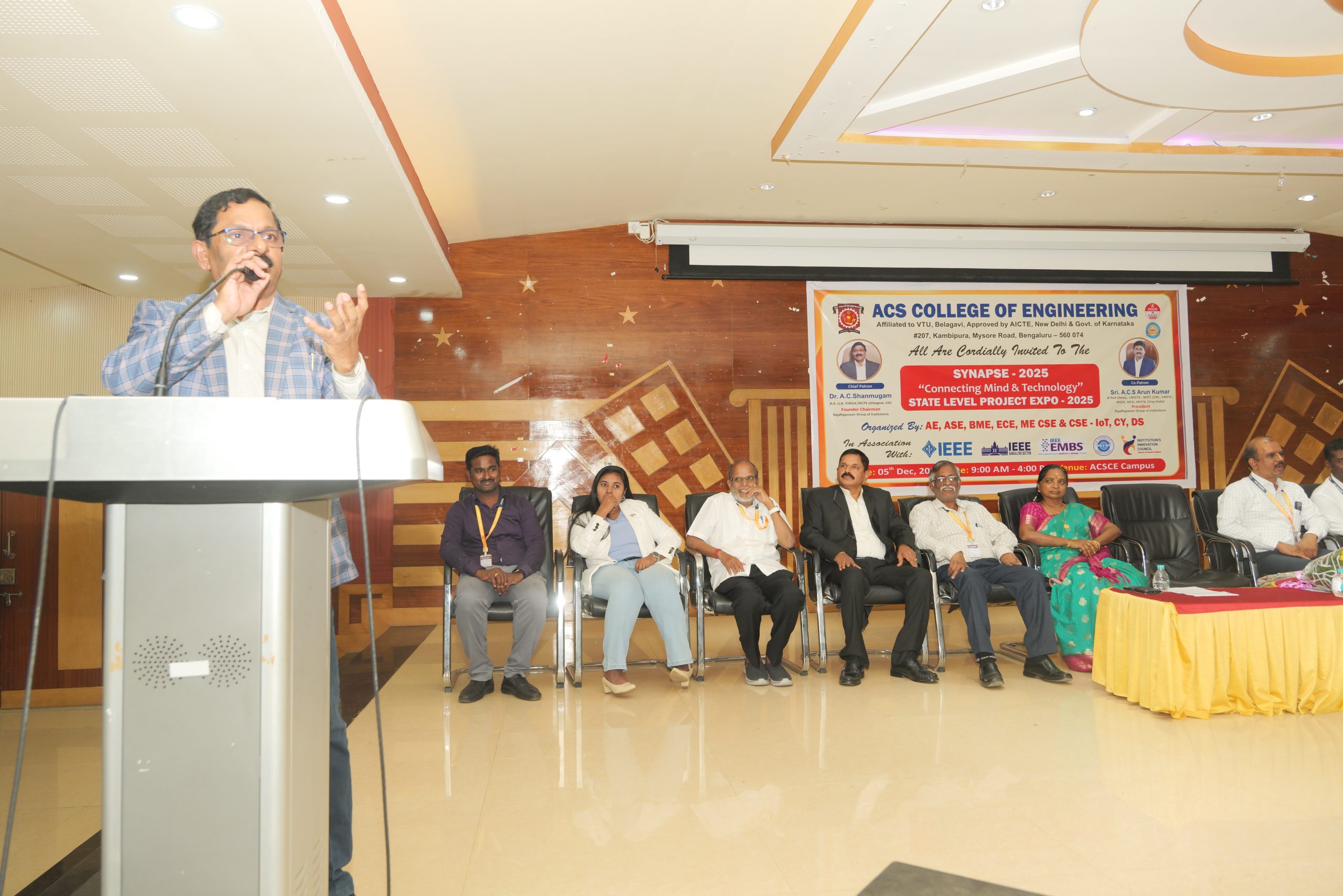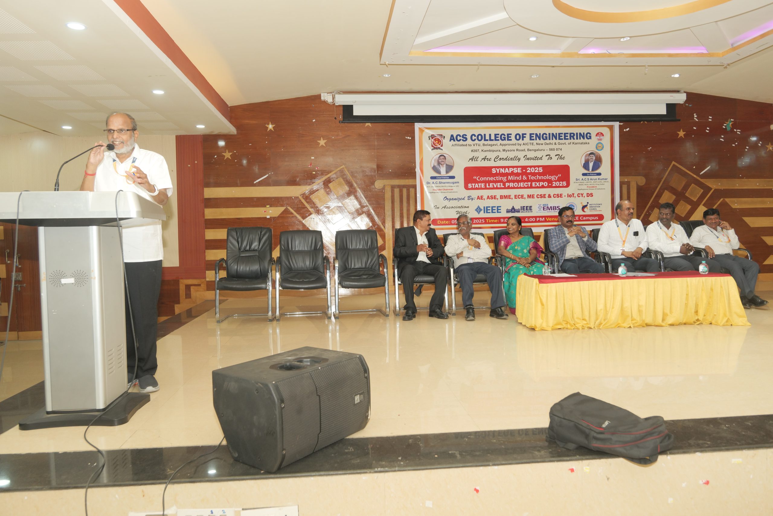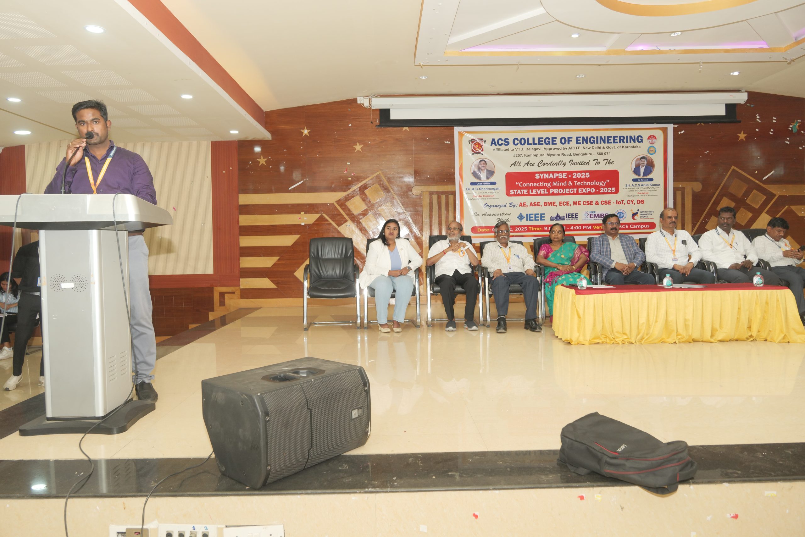 ACS College of Engineering (ACSCE) successfully organized SYNAPSE 2025 – State Level Project Expo in association with the Institution’s Innovation Council (IIC) and all academic departments. The event served as a vibrant platform to promote innovation, interdisciplinary collaboration, and practical application of engineering knowledge among students.