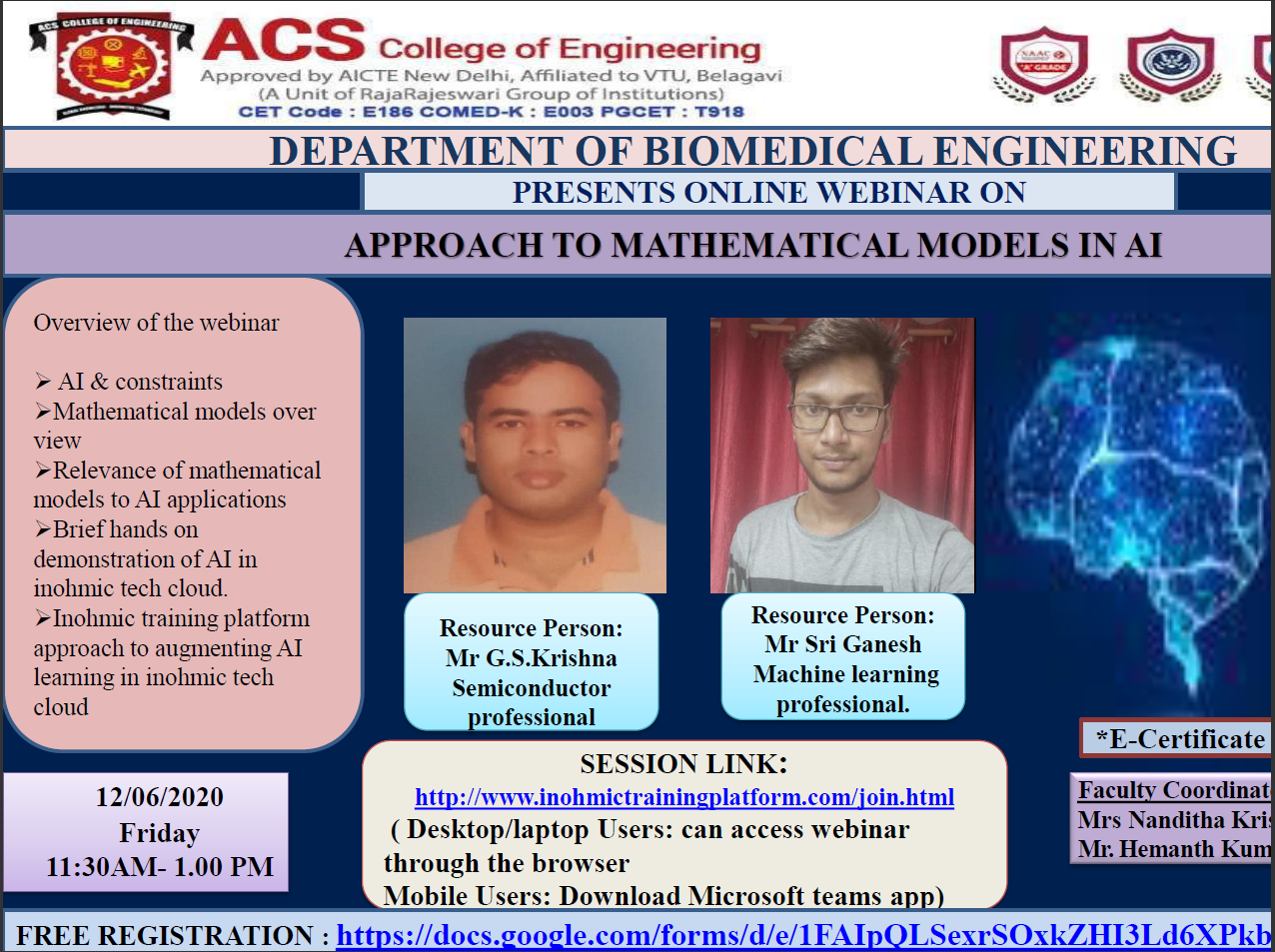 Department of “Biomedical Engineering, ACSCE has conduct the following Events,