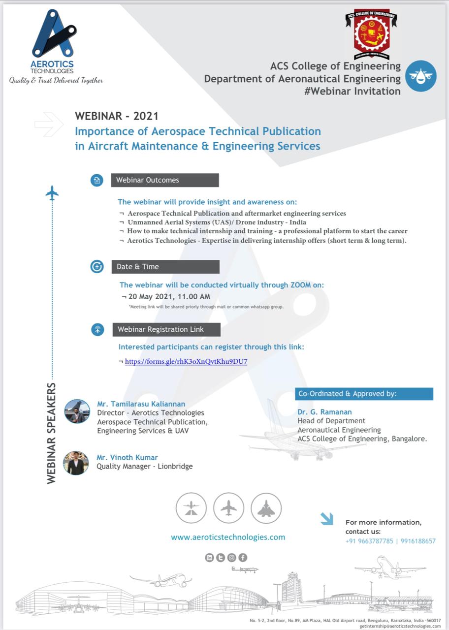 webinar on “Importance of Aerospace Technical publication in Aircraft maintenance and Engineering services”(AE)