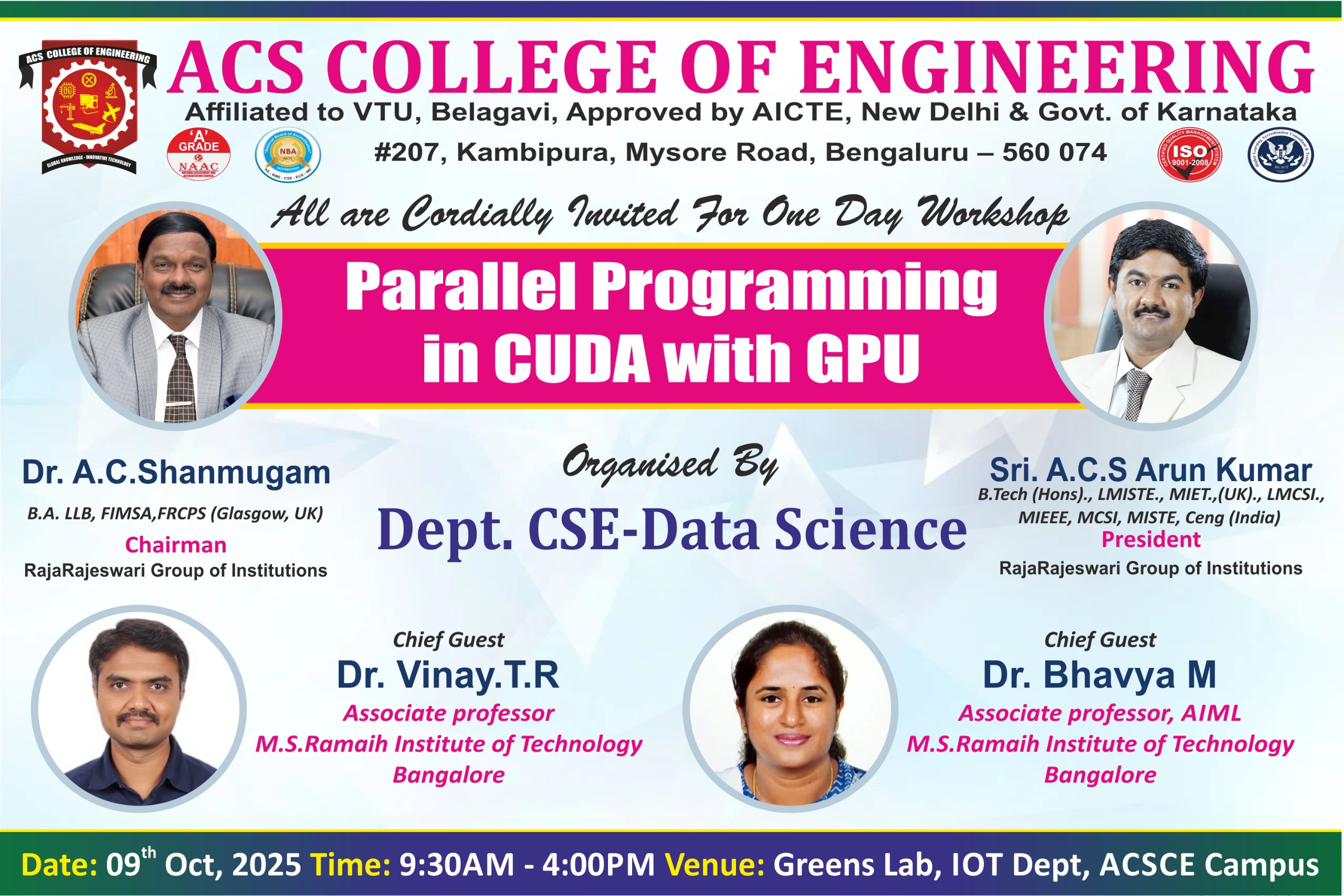 The Department of Computer Science and Engineering – Data Science is Organizing a Workshop on “Parallel Programming” for 7th Semester Students.
