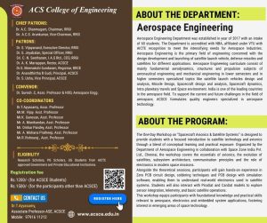 The Department of Aerospace Engineering at ACS College of Engineering successfully organized a Workshop on Spacecraft Technology on 27th November 2025. The event provided students with hands-on exposure to spacecraft design concepts, avionics fundamentals, and satellite system operations, bridging the gap between academic learning and real-world aerospace applications.